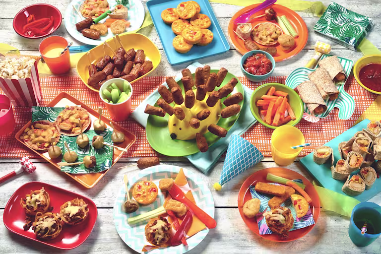From Crispy Nugget Pizza Bites to Vegan Ham and Cheese Rolls, we have it all! Perfect snack ideas to make any birthday party go with a bang!