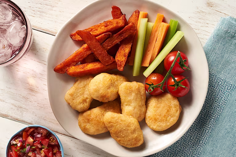Golden, crispy and delicious! Get back to school ready with Quorn Crispy Nuggets. Easy to cook from frozen and total crowd pleasers! Ideal as a quick mid-week family dinner, stuffed in a pitta or wrap for a quick lunch or served with a dip for an after-school snack. Quorn Nuggets are a source of protein & fibre and low in sat fat, so they’re a nutritiously easy swap into mealtimes!
