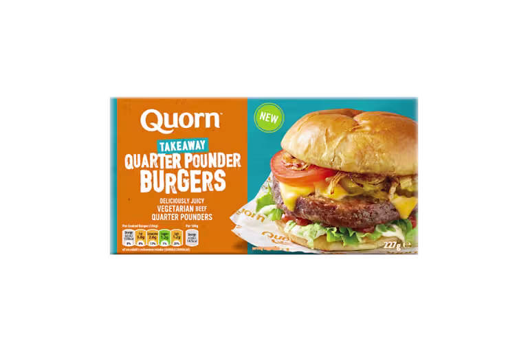 Try our NEW Quorn Takeaway Quarter Pounder Burgers. They’re deliciously juicy, high in protein with 16g protein per burger and cook from frozen in minutes. These vegetarian beef Quarter Pounder Burgers are the ultimate takeaway at home treat!