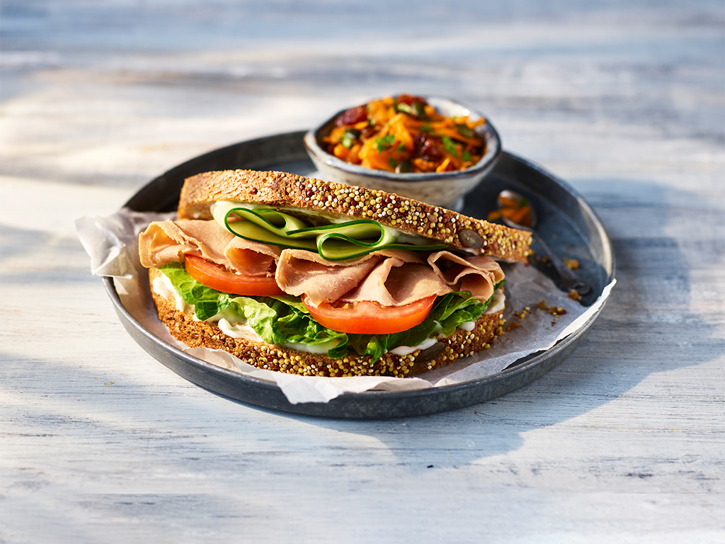 Quorn Finely Sliced Ham is a tasty meat-free swap into your usual sandwich that the whole family will love. Serve up the classic wafer-thin ham sandwich, whether working from home or as part of a school day lunch box; this succulent meat-free ham is high in protein, low in sat fat and totally vegan. Can lunchtime be any tastier?