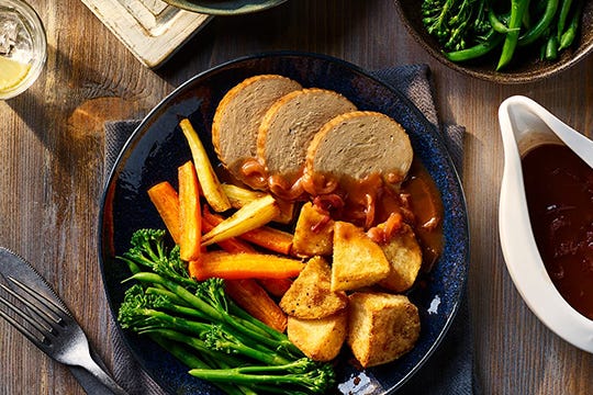 For Sunday lunch or Christmas dinner, nothing brings people together like a classic British roast dinner. Try our delicious vegetarian chicken roast for a meat free centrepiece, or just a weeknight vegetarian family dinner. Full of flavour and not saturated fat, our vegetarian roast is the perfect meat free alternative to chicken or turkey and is a healthy way to enjoy our nation's favourite meal with a vegetarian twist. Don't forget all the trimmings, like veggie pigs in blankets, veggies and Yorkshire puddings. Explore our vegetarian roast recipe inspiration hub here.