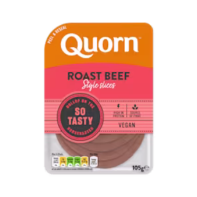 - Once cooked, top one slice with the Quorn Roast Beef and Quorn Vegetarian Ham Slices and ketchup, and the other slice with cheese.