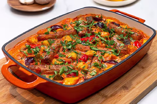 Creamy Quorn Vegetarian Sausage & Gnocchi Traybake