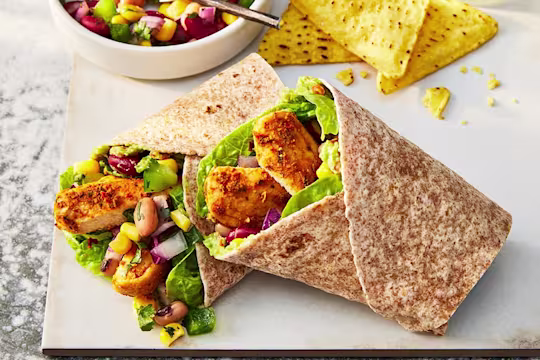 - Add 2 tablespoons of the vegetarian Mexican bean salad to each wrap.