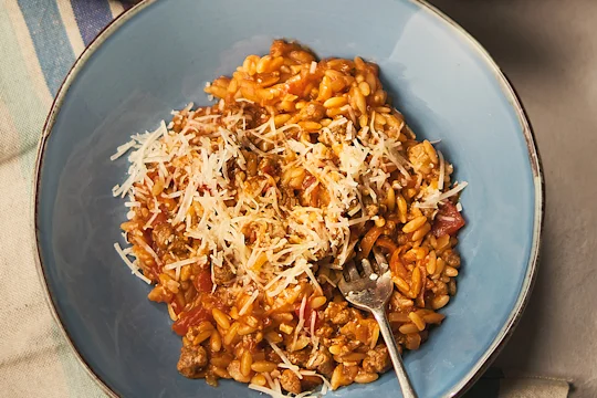 Switch up the classic spag bol with this Orzo Bolognese recipe in your weekly family meal plan! Made with Quorn Vegetarian Mince simmered in a tomatoey Bolognese sauce made with veggies, tomatoes and red pesto.