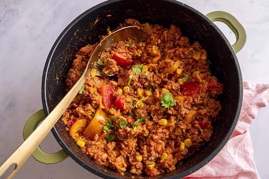 Save on time (and washing up) with this Quorn Vegetarian Mince One Pot Creamy Spicy Rice recipe. Our vegetarian one pot is a tasty mid-week meal idea which is perfect for the family or for lunches throughout the week. It’s packed with veggies, full of flavour and is also gluten free. An easy and delicious dish our Quorn Vegetarian Mince One Pot Spicy Rice will be your next family favourite!