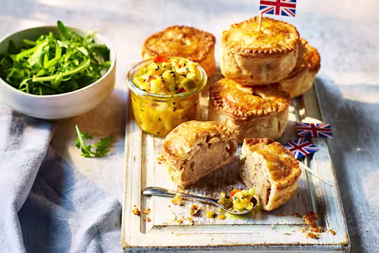 - Mix the Marmite with one teaspoon of water and brush the pastry of each pie with this mixture.