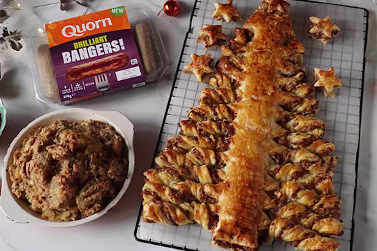 - Break the Quorn Brilliant Bangers into pieces and add them to a large bowl. Add the onion, sage, garlic, breadcrumbs, grated vegan cheese and season with salt. Mix it all together until well combined.