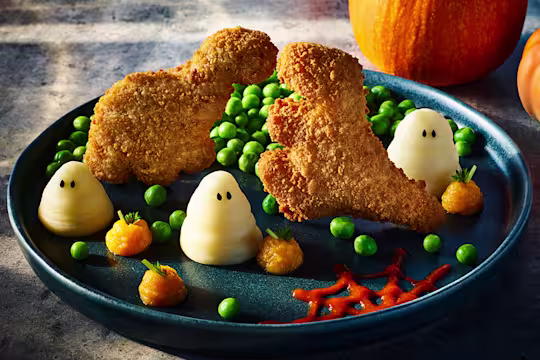 - Plate up your spooky dino-scene with the Roarsomes, mash ghosts, swede pumpkins and peas. Splatter with creepy ketchup and enjoy!