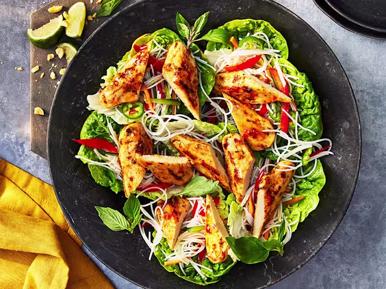 - Dip your rice paper into hot water for just a few seconds, evenly coat it with water. Put a rice paper on the towel, add two or three slices of Quorn Sweet Chilli Mini Fillets, a small handful of mixed veg, noodles and some mint leaves. Roll them up by folding both sides over the filling, then rolling them up snugly.