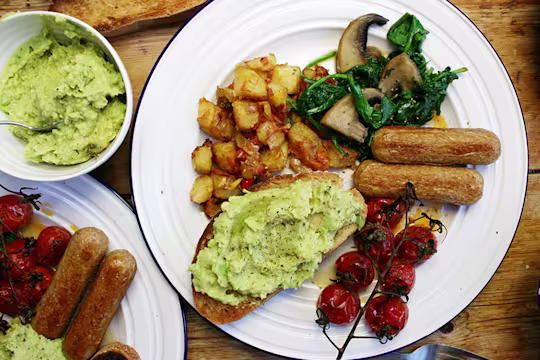 Tomatoes, spinach and mushrooms oh my! Add a vegan twist to the classic British staple. Brunch like a king with this meat-free fry up recipe using Quorn Brilliant Bangers and Quorn Vegan Smoky Ham Slices.