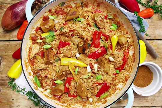 - Stir in the cooked Brilliant Bangers along with 250g long grain rice. Add the chopped tomatoes and the vegetable stock. Cover and simmer for 20-25 mins until the rice is tender and serve straight from the pan.