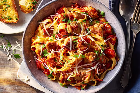 Move over bolognaise there's a new pasta dish in town and this one is meaty. Our Vegan Sausage Ragu recipe is the ultimate comfort pasta dish made with our tasty Brilliant Bangers and topped with freshly grated Violife Prosociano Wedge. Serve with fettuccine or your favourite pasta and a slice of vegan garlic bread!
